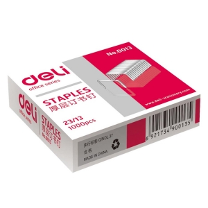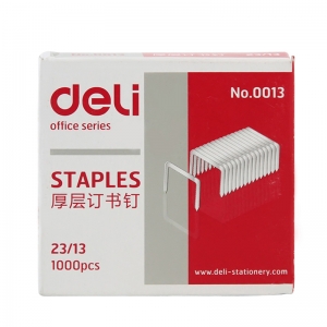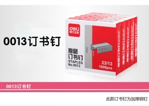 商品名称:得力(deli) 0013 厚层订书钉 23/13 1000枚/盒(可钉100张)单盒装