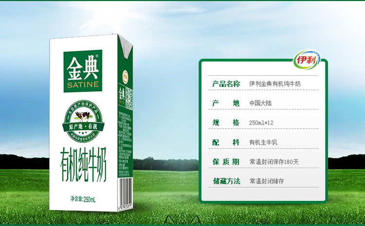商品名称:伊利 金典有机纯牛奶250ml*12盒/礼盒装