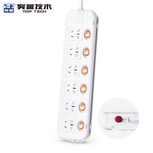 商品名称:突破(TOP) T6K6 6位 分控开关 过载自动断电插线板 1.8米