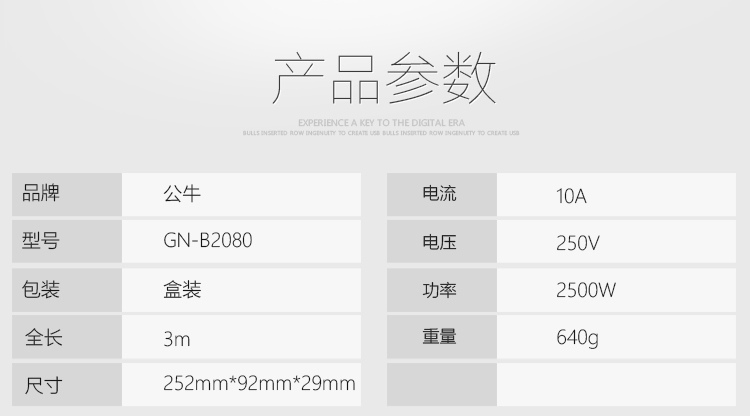 商品名称:公牛(BULL)GN-B2080 8位 3米 总控开关 插座