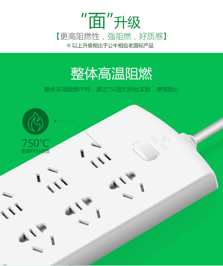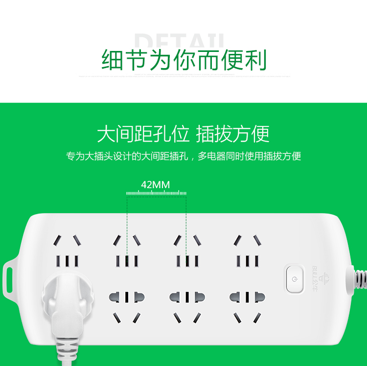 公牛(BULL)GN-B2080 8位 3米 总控开关 插座
