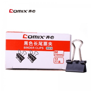 - 商品名称:齐心(COMIX) B3610 黑色长尾夹 15mm 12个/盒