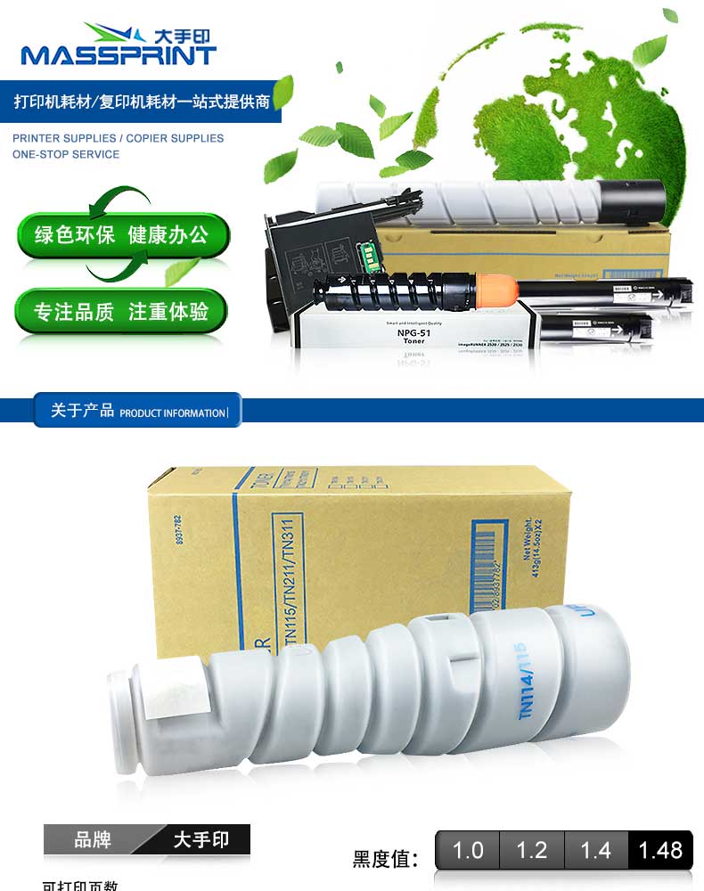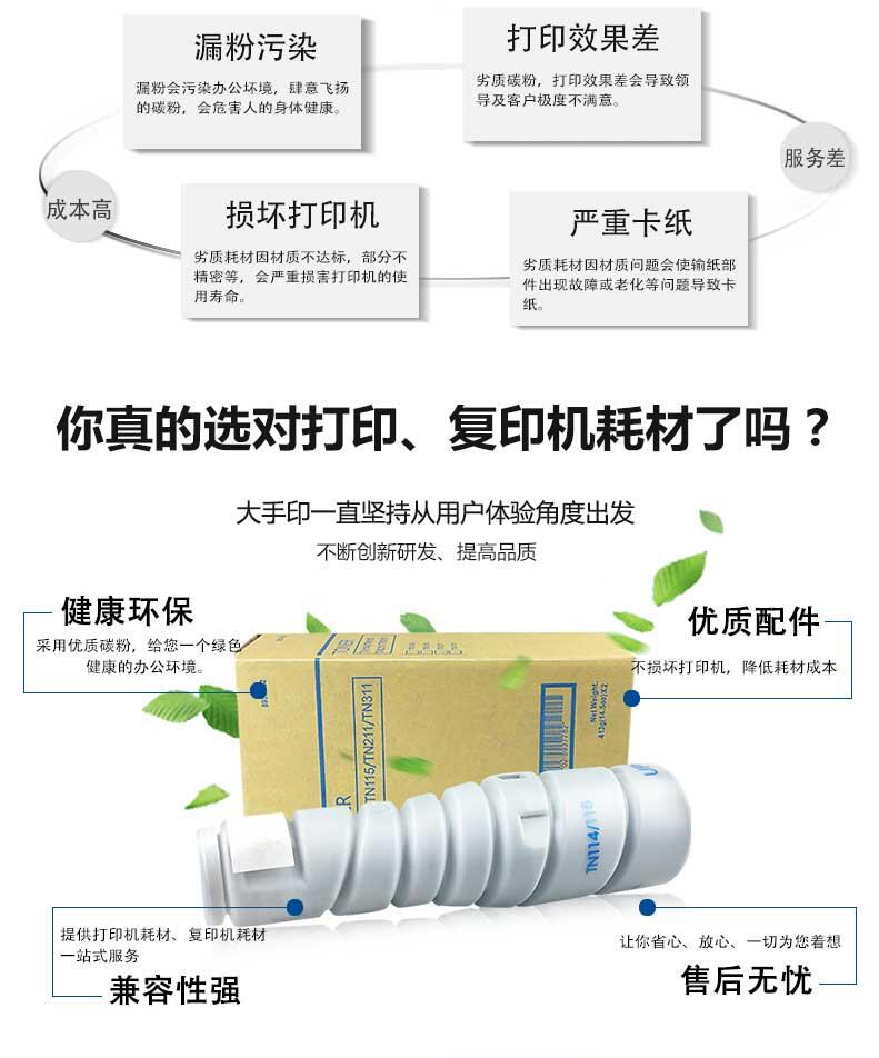 商品名称:大手印 复印机低容粉盒 TN114B/TN115B 柯尼卡美能达TN114B/TN115B 适用bizhub162/210/7516/7521/163/211/220/7216/7220 Di152/183/1611/2011/7622 Di163V/183V/1020/1290/1512/1515/1518/7516V/7616V