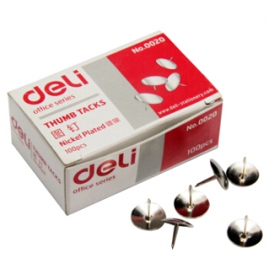 商品名称:得力(deli) 0020 镀镍图钉 金属大头钉 100粒/盒