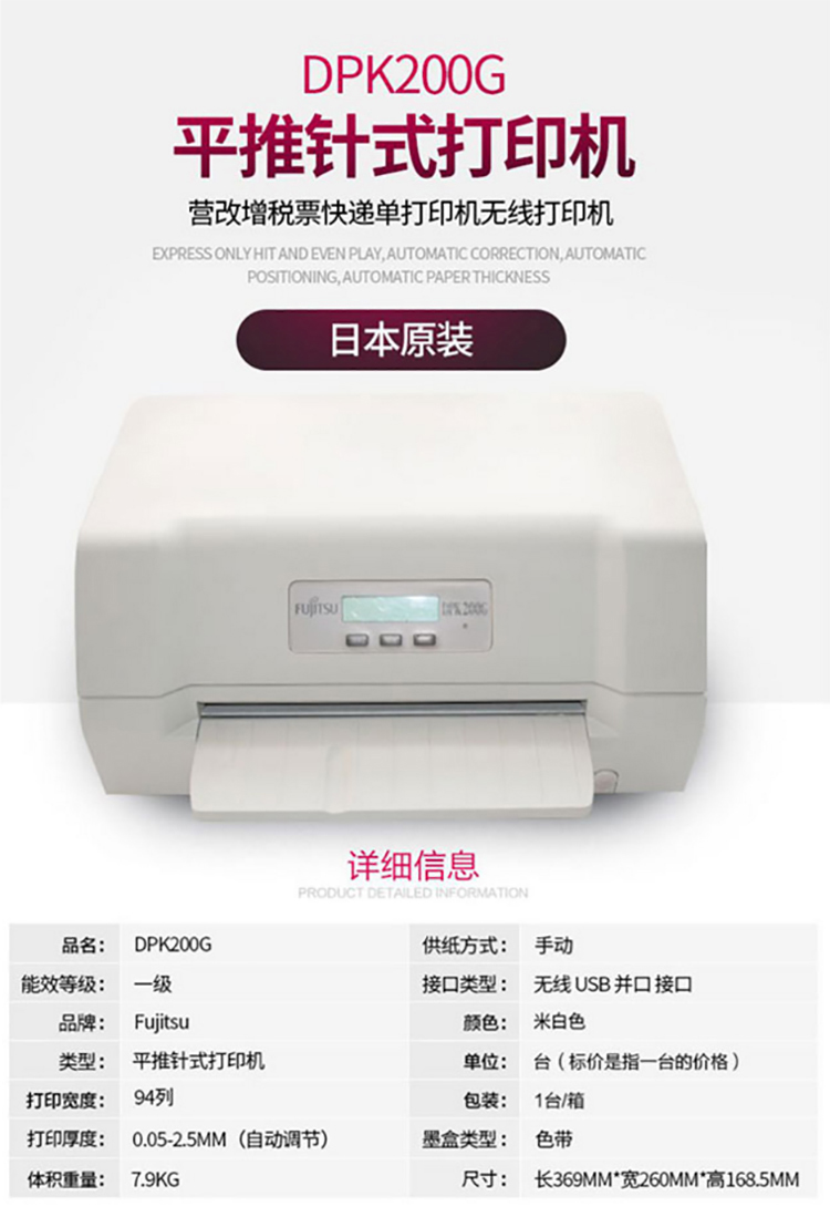 - 商品名称:富士通(FUJITSU) DPK200G 针式打印机 94列平推票据(存折打印)(1+6份拷贝)连续进纸 一年上门