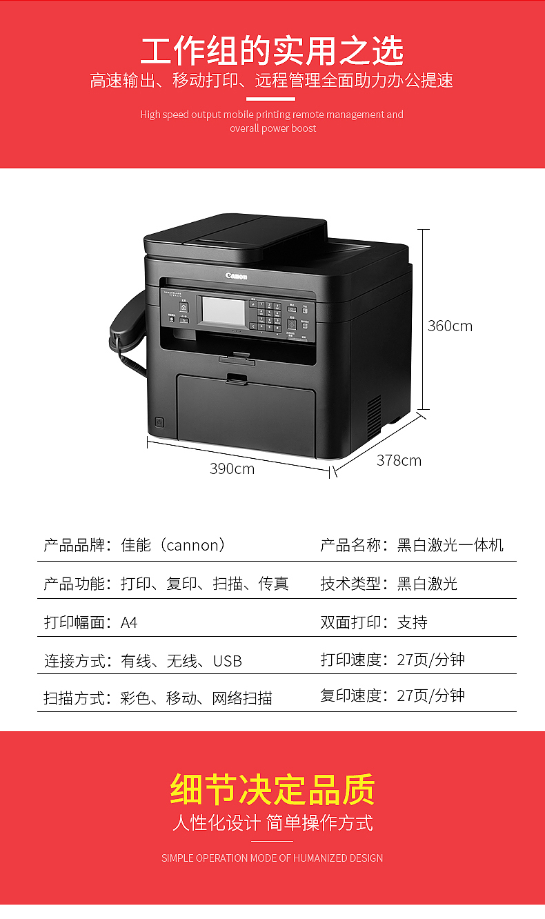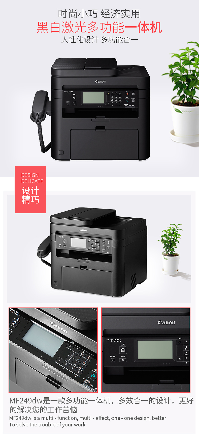 商品名称:佳能(Canon)MF249dw imageCLASS 智能黑白 激光多功能打印一体机