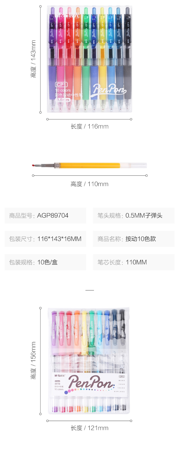 商品名称:晨光(M&G) AGP89704 彩色按动中性笔 0.5mm 10色装