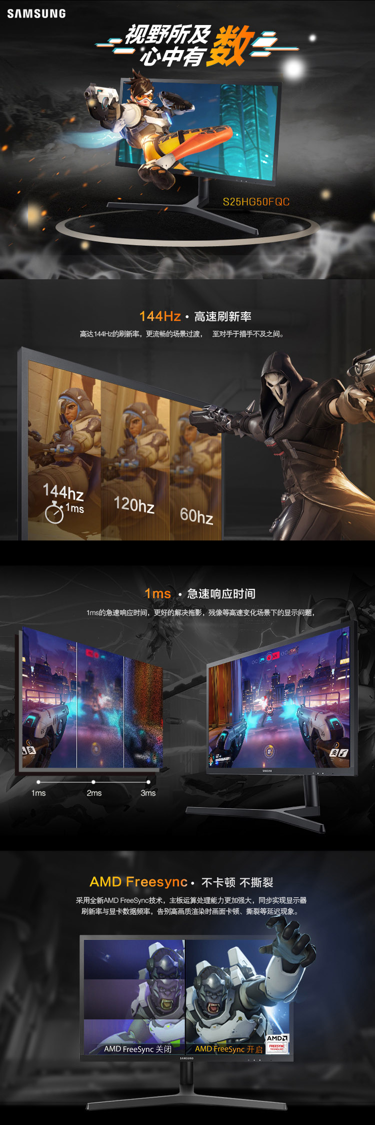 商品名称:三星(SAMSUNG) S25HG50FQC 24.5英寸电竞显示器 144Hz