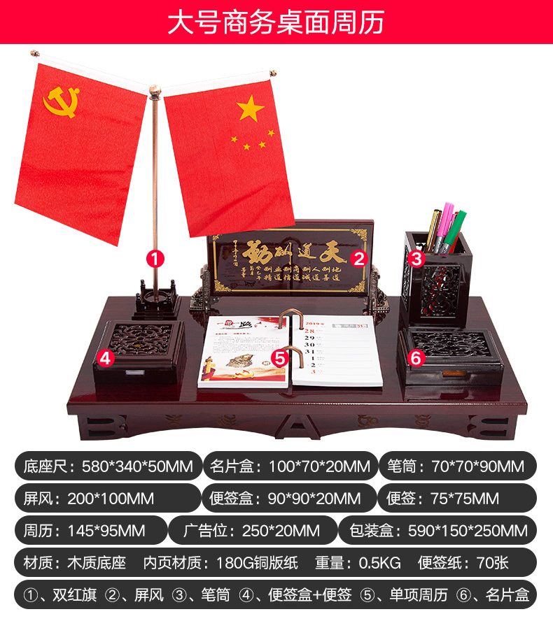 商品名称:朗捷 2019 商务桌面木质台历 大号-天道酬勤