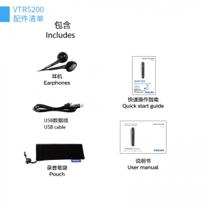 商品名称:飞利浦 PHILIPS VTR5200 8GB 双麦克风数码录音笔 锖色