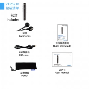 商品名称:飞利浦 PHILIPS VTR5210 16G 数字降噪 双麦克风数码锂电录音笔