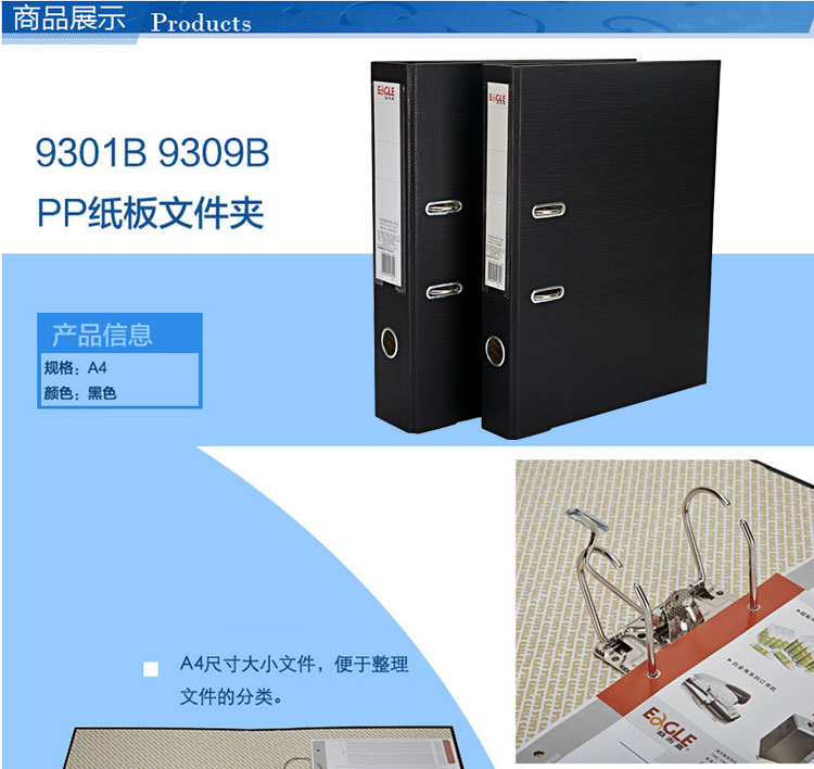 - 商品名称:益而高(Eagle) 9309B/1 两孔快劳夹 A4 背宽55mm 30个/箱(黑色)