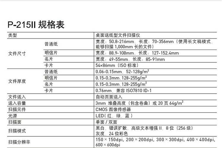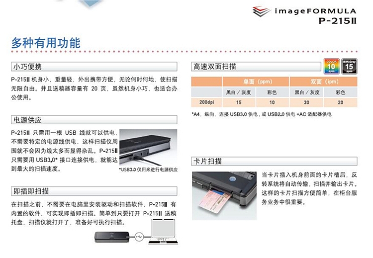 商品名称:佳能 (Canon)P215II 便携式扫描仪 285x95x4