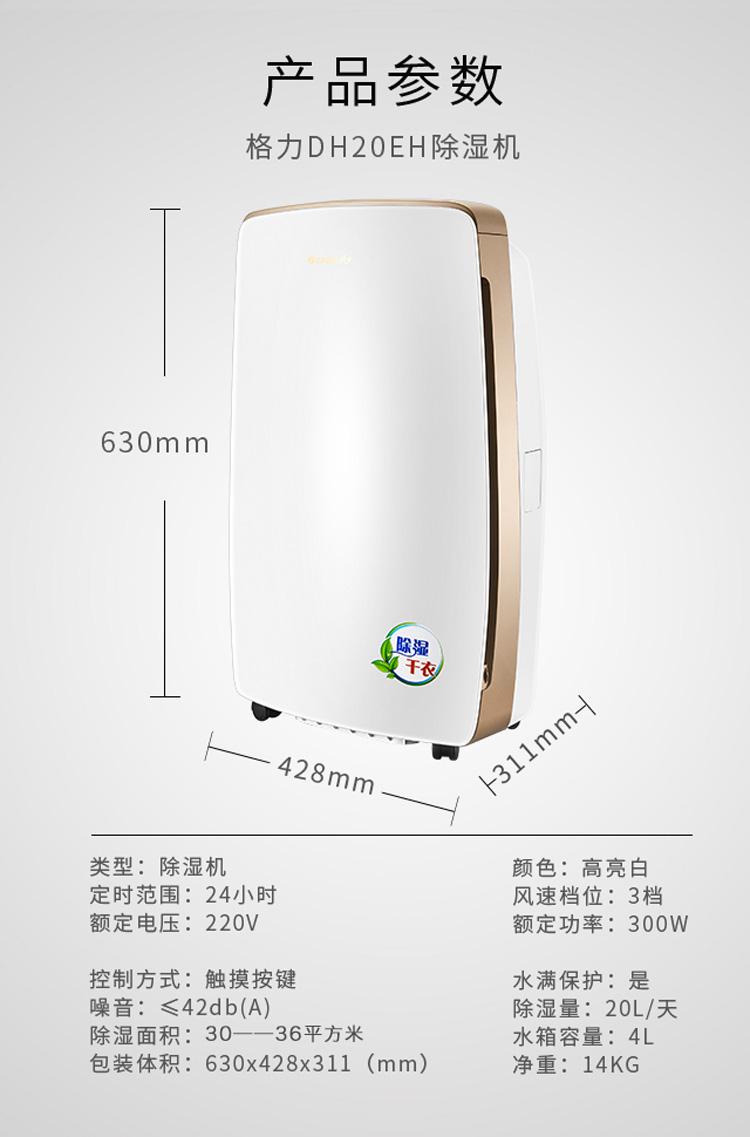 商品名称:格力(GREE)DH20EH 抽湿机/除湿机 除湿量20升/天