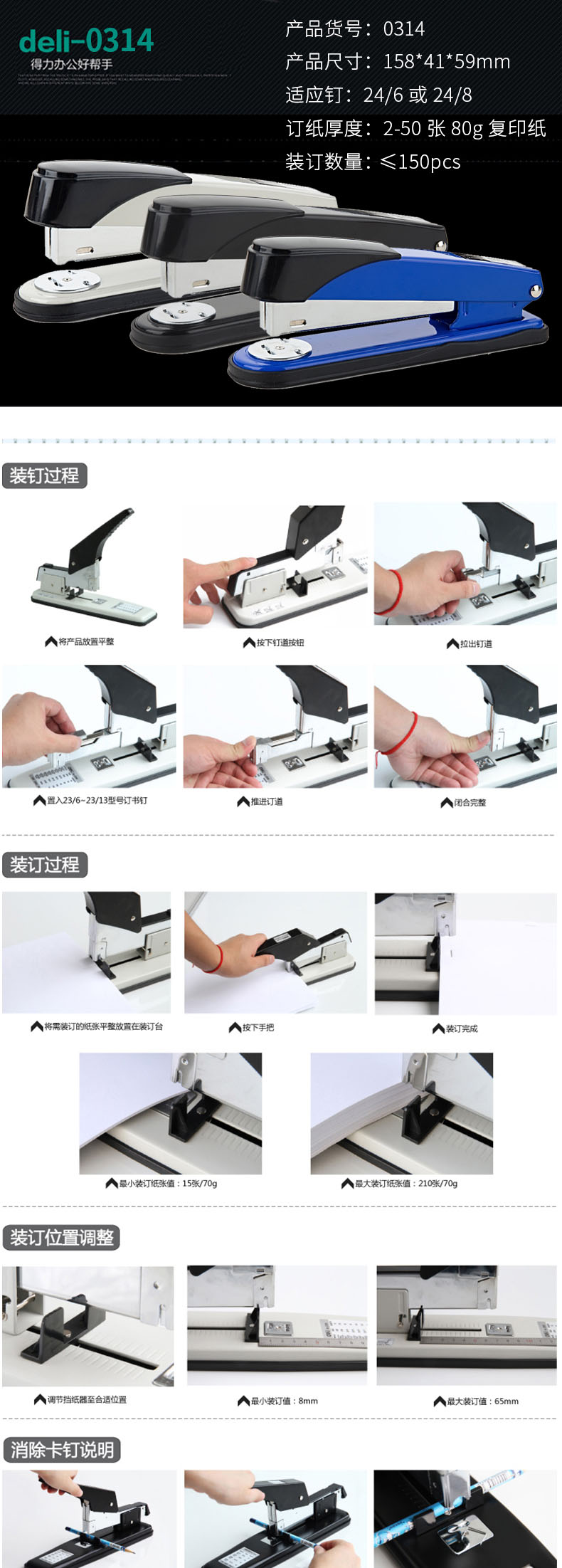 - 商品名称:得力(deli) 0486 重型订书机 (可订120页)