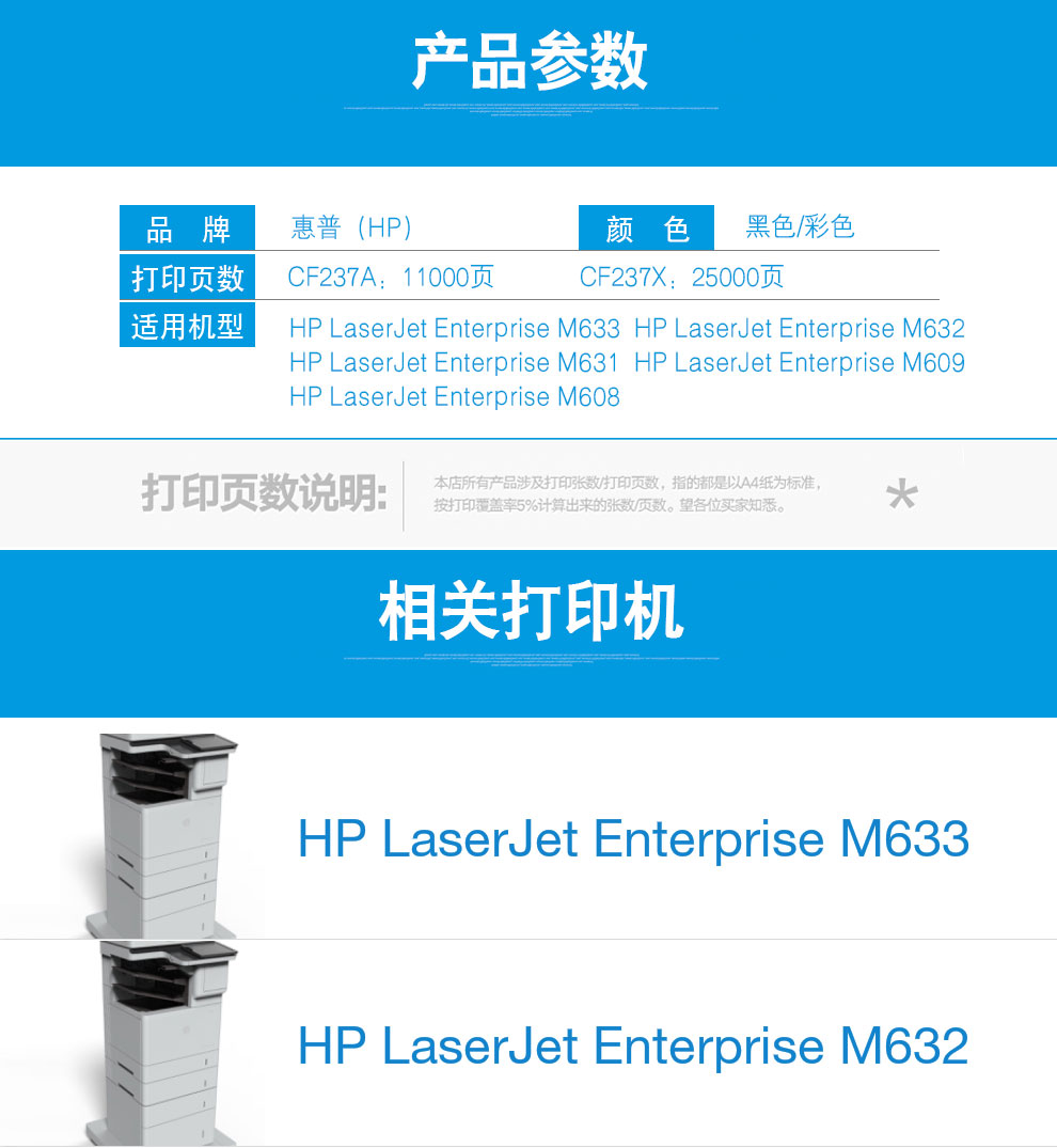 惠普(hp)原装CF237A硒鼓X M607 608 609 631 632打印机墨粉盒 (硒鼓) 标准
