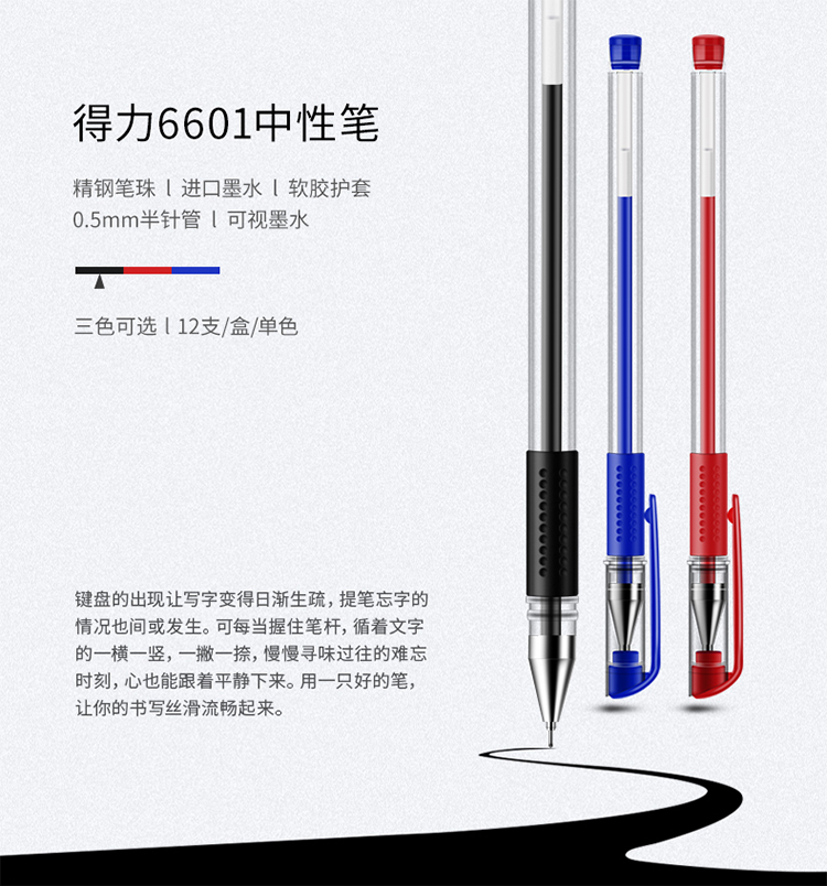 商品名称:得力(deli)6601 经济型中性笔 (黑色) (计价单位:支)