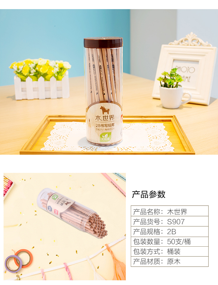 商品名称:得力(deli) S907 原木2B铅笔 (计价单位:筒)