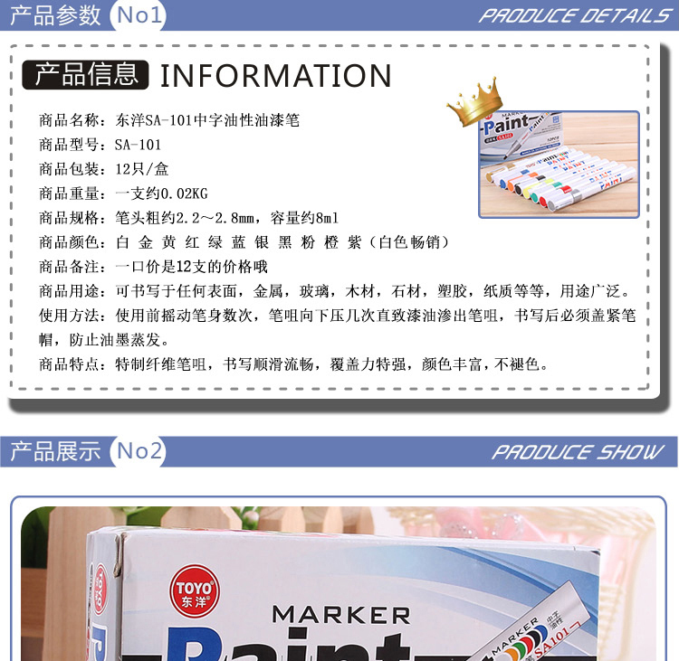 - 商品名称:东洋 SA-101 油漆笔 12支/盒(黑色)