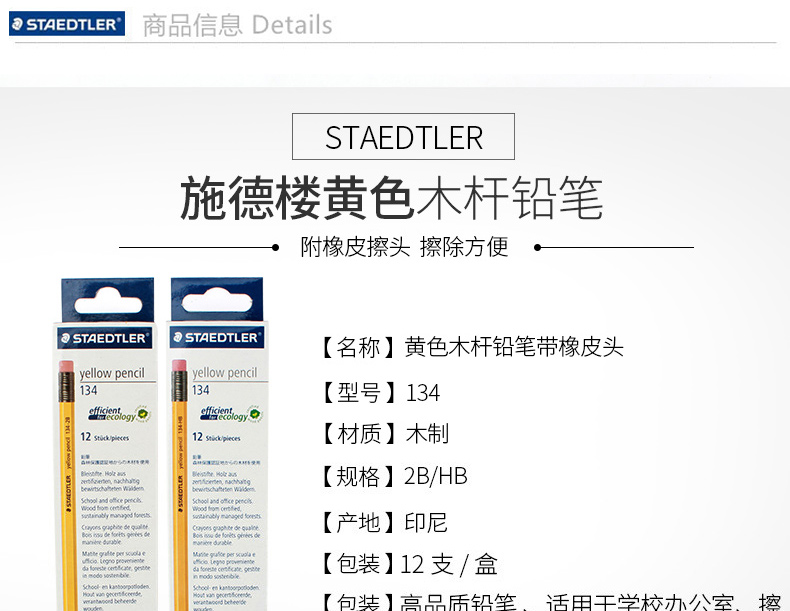 商品名称:施德楼(Staedtler) 134 铅笔 12支/盒(2B)