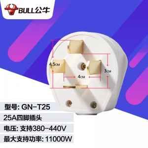 商品名称:公牛 GN-T25 三相四线插头25A 440V 大功率四脚插头