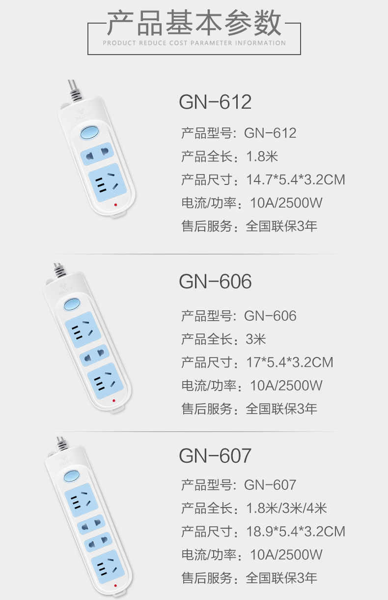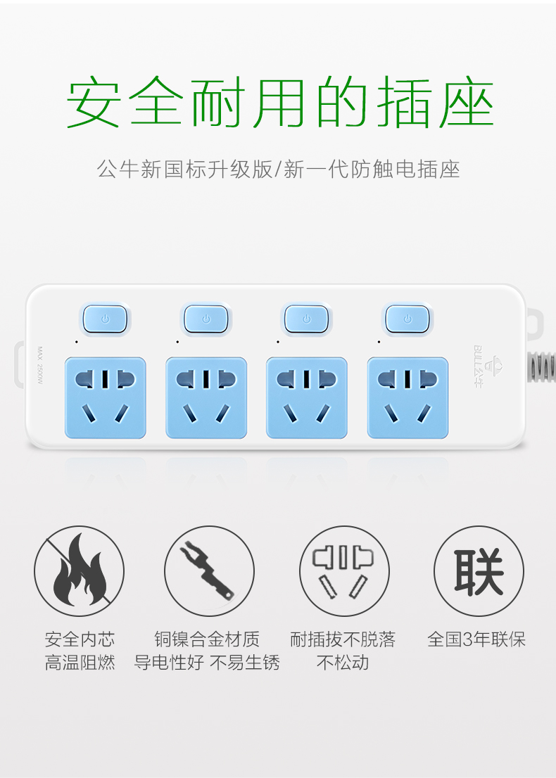- 商品名称:公牛 BULL 10A250V GN-606 1MM 1.8米 单开关插排