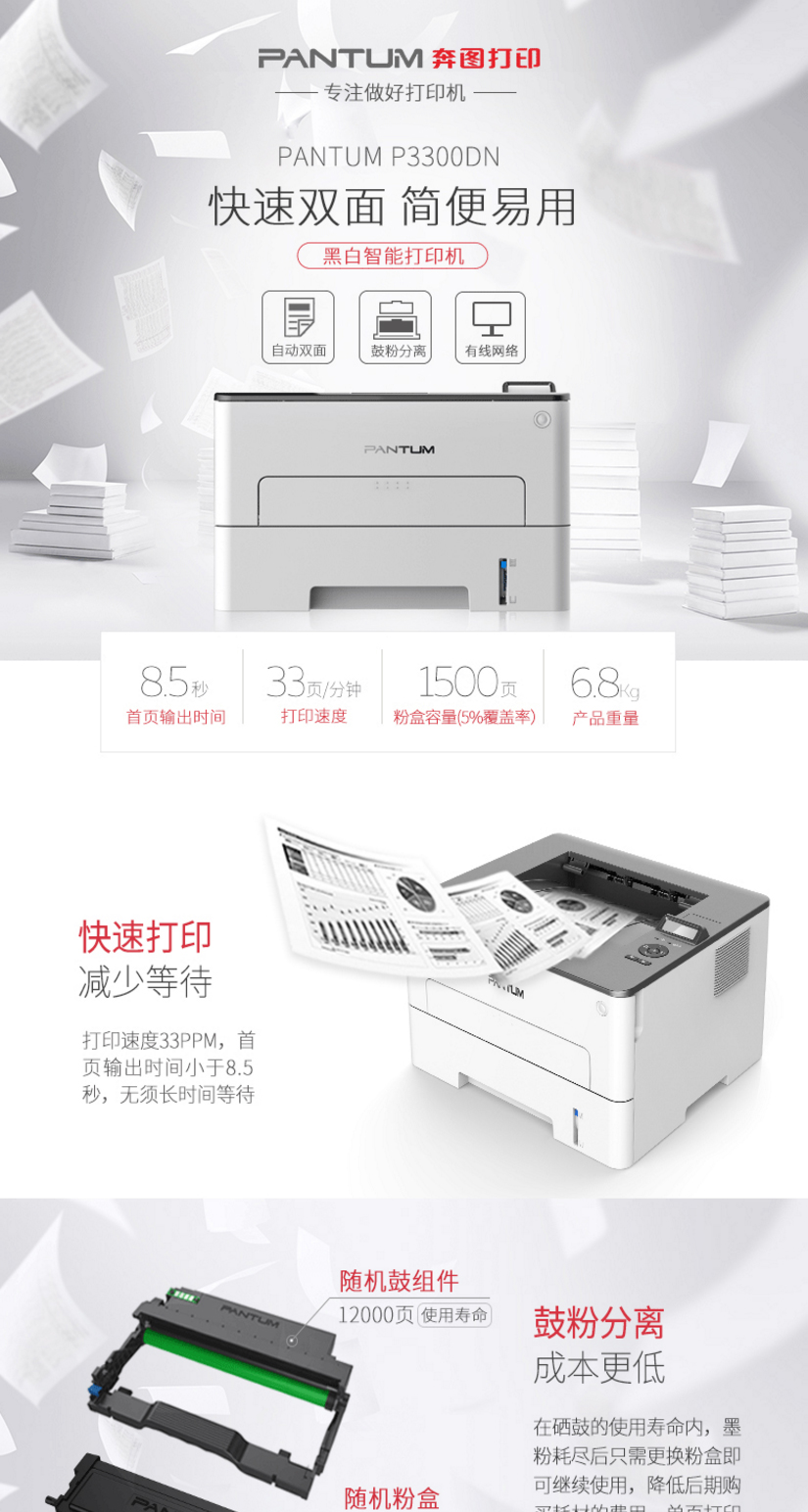 商品名称:奔图 Pantum P3300DN 黑白激光打印机
