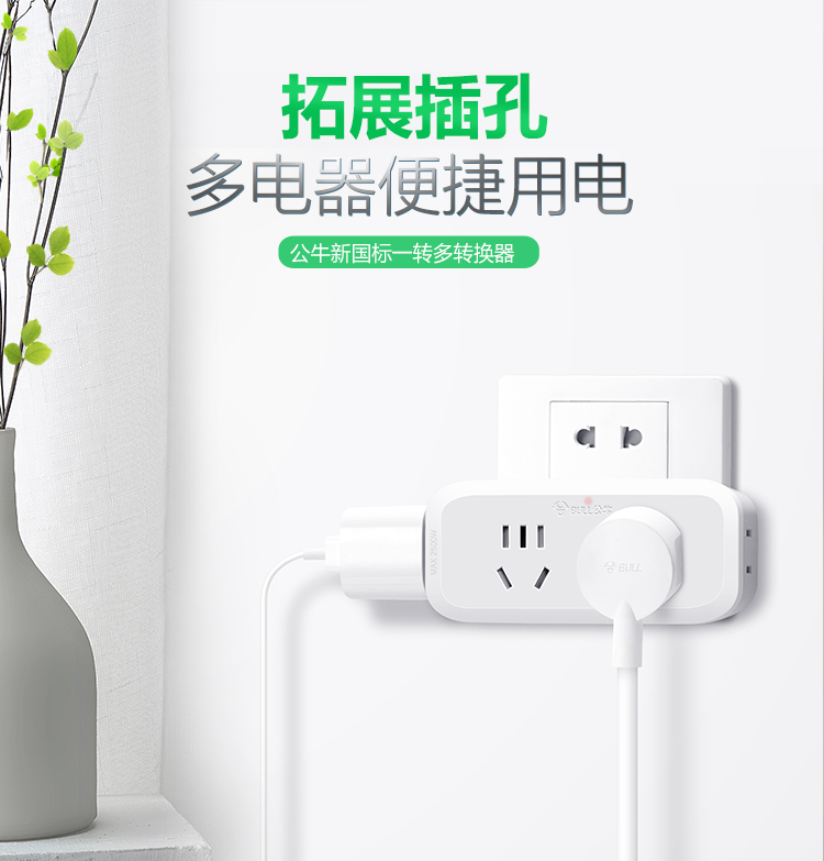 公牛 BULL GN-904 一转四插座/转换插头/电源转换器