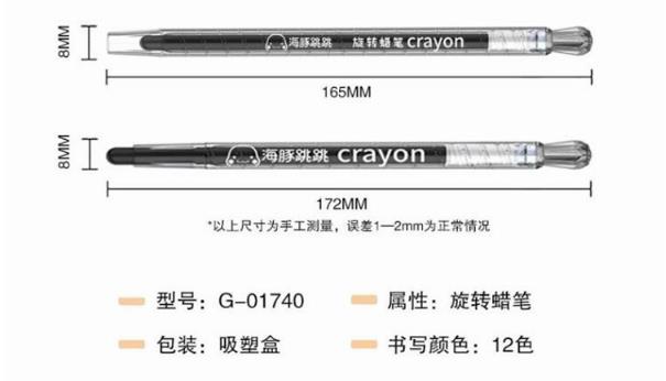 商品名称:金万年 G-01740 海豚跳跳长杆12色套装旋转蜡笔-多颜色