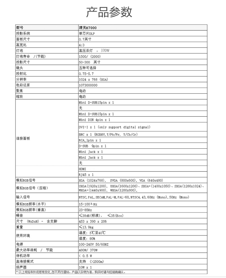 商品名称:理光 投影仪 PJ K7000