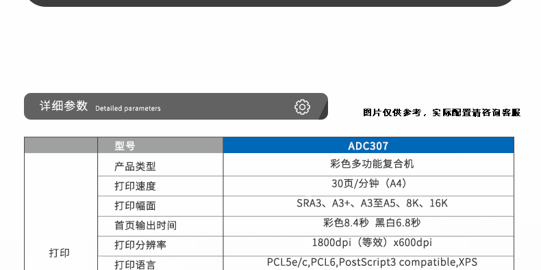 商品名称:震旦(AURORA)ADC307 A3 彩色数码复印机/复合机