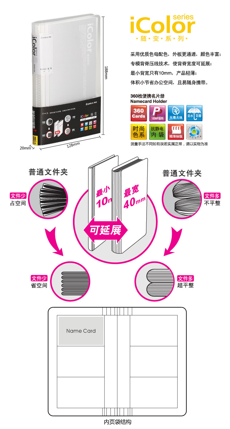 商品名称:齐心(COMIX)SC360 名片册大容量360枚多色便携