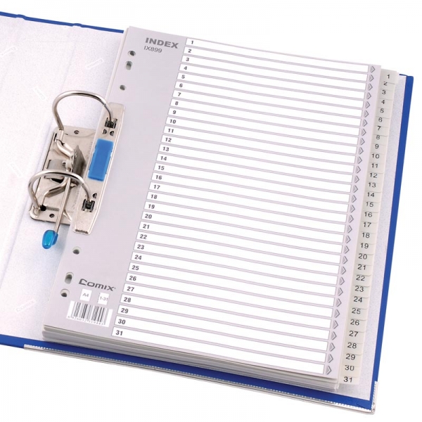齐心文具IX899月度A4索引纸打孔文件夹专用11孔31页分类纸