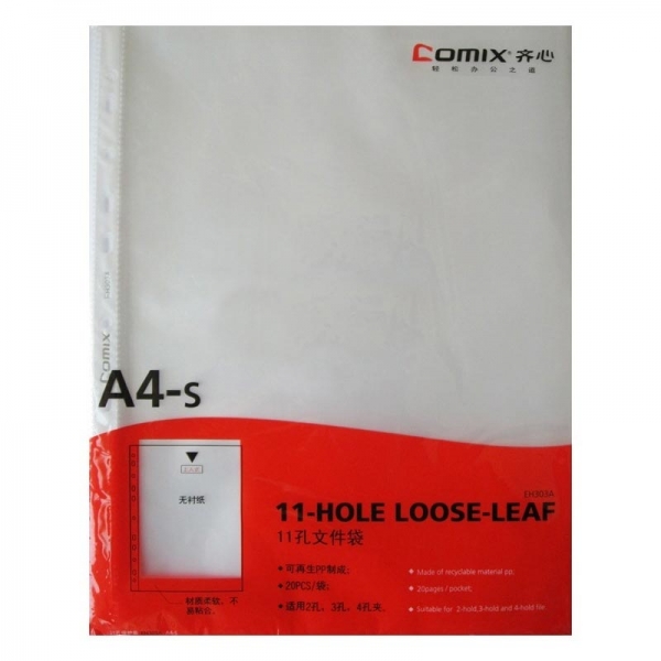 齐心11孔活页文件保护袋EH303A A4 20个/包