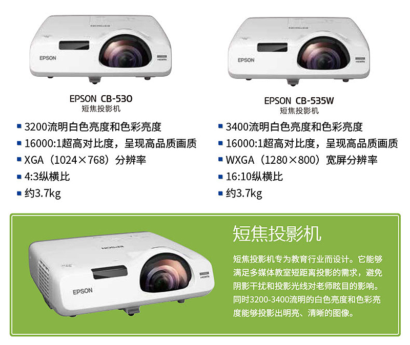 商品名称:爱普生(EPSON)CB-530 短焦投影仪