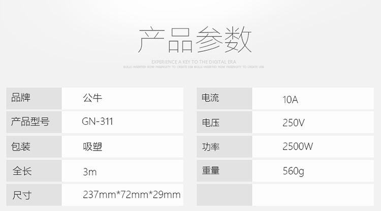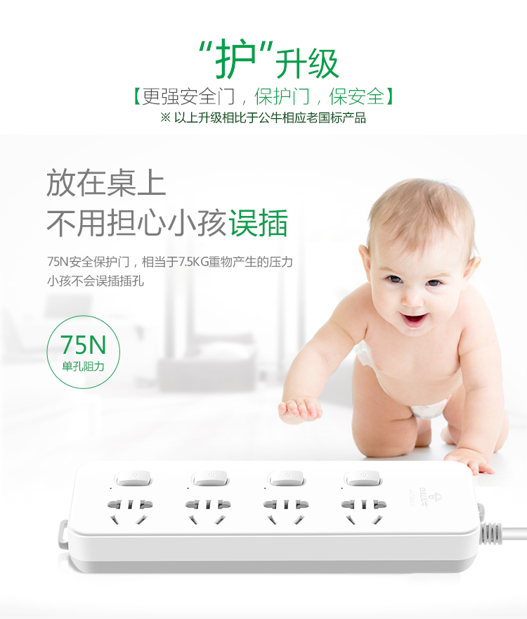 商品名称:公牛(BULL)GN-311 4位分控全长3米 过载保护插排