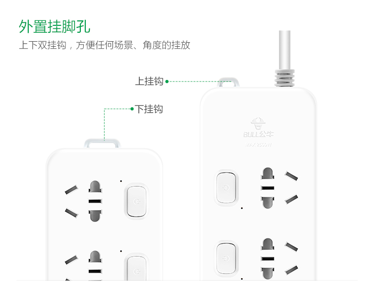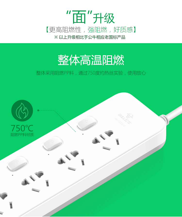 公牛(BULL)GN-311 4位分控全长3米 过载保护插排