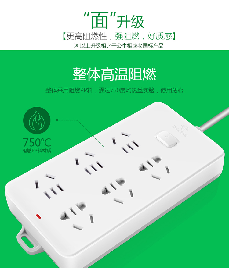 公牛(BULL) GN-109K 6位总控全长3米插座