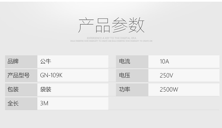 商品名称:公牛(BULL) GN-109K 6位总控全长3米插座