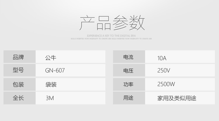商品名称:公牛 GN-607 4位3米总控插座/插线板