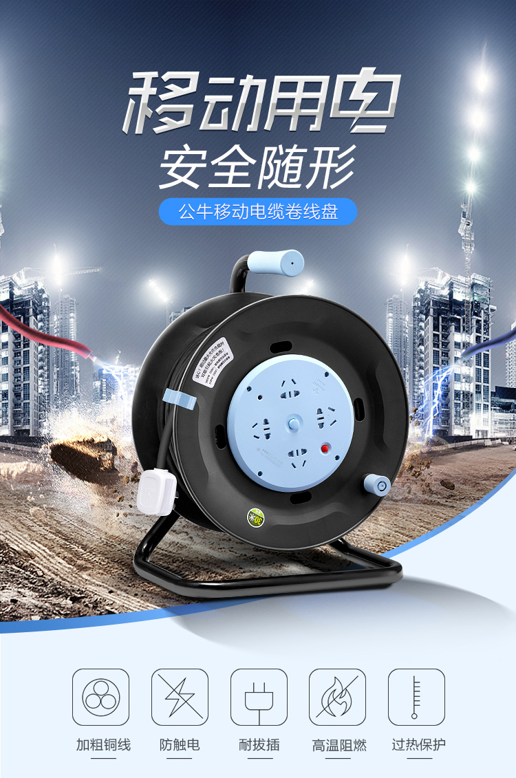 公牛 10A250V 1MM 单相 GN-804 50米 工程接线盘/过热保护电缆卷盘插座/插排