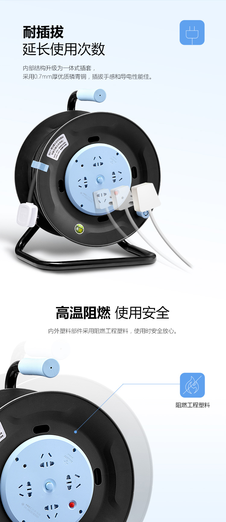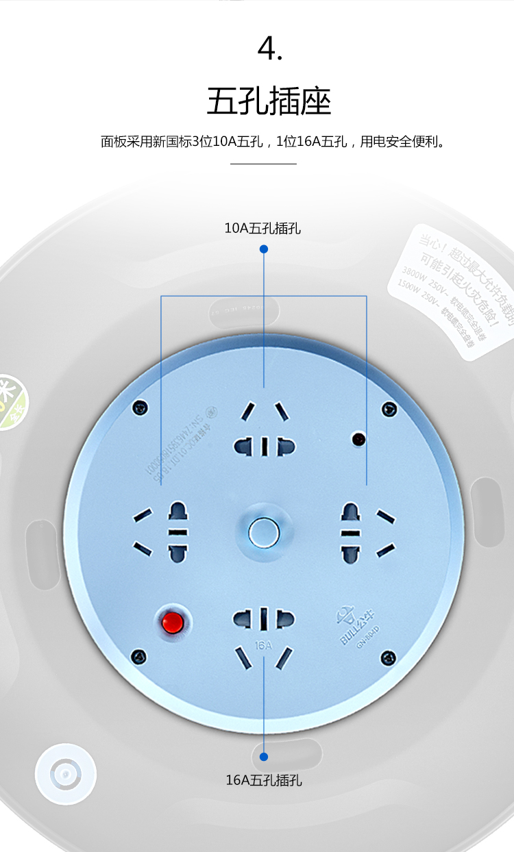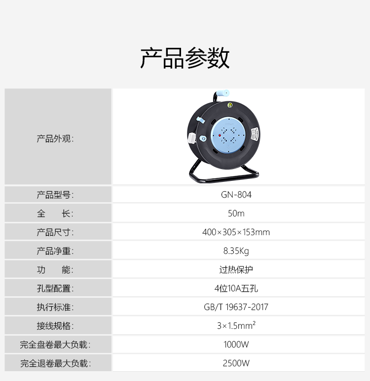 商品名称:公牛 10A250V 1MM 单相 GN-804 50米 工程接线盘/过热保护电缆卷盘插座/插排