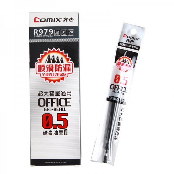- 商品名称:齐心R979签字笔芯 水笔芯替芯超大容量中性黑笔芯子弹头笔芯0.5mm