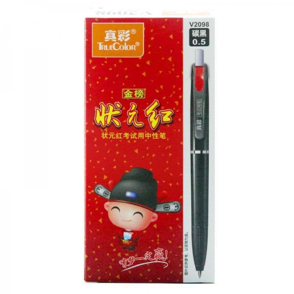 真彩(TrueColor) V2098金榜状元红考试用按动中性笔 碳黑 0.5mM 通用头 12支/盒