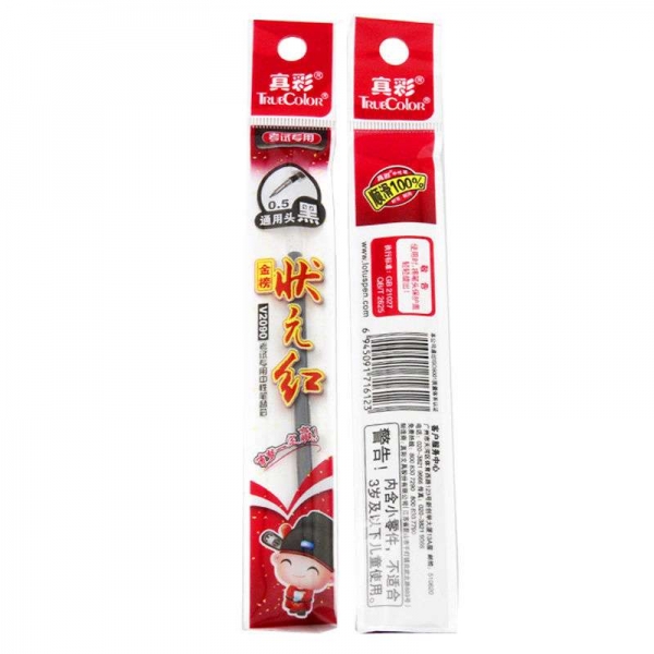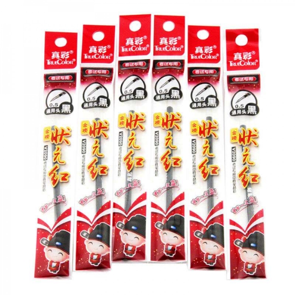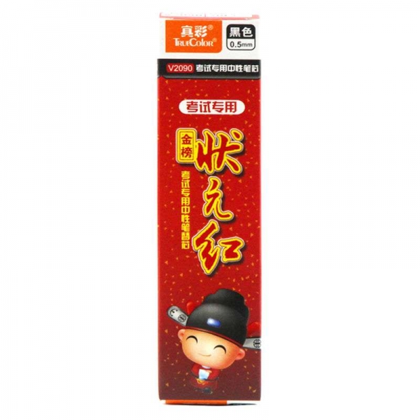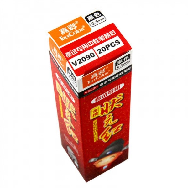 - 商品名称:真彩 V-2090 状元红系列考试必备中性芯(包装芯) 黑色 0.5mm 通用头 20支/盒
