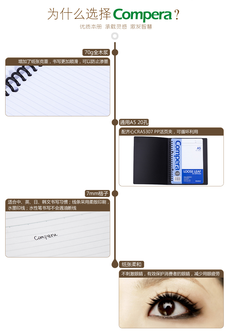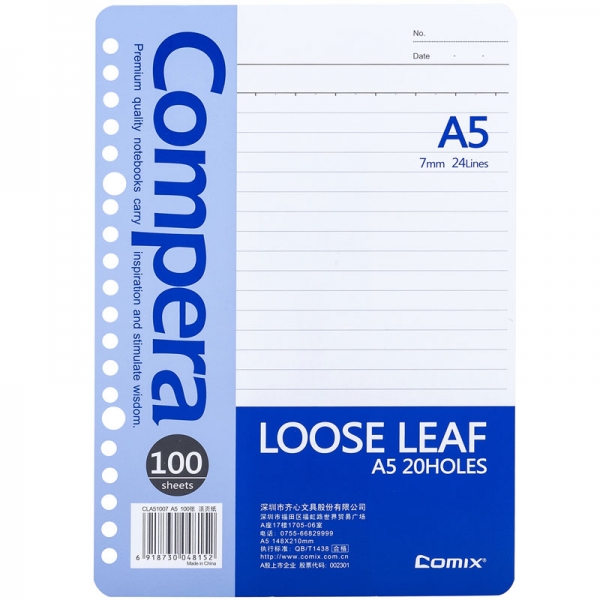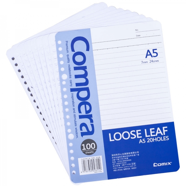 商品名称:齐心CLA51007活页替芯笔记本20孔A5 100张 (计价单位:本)