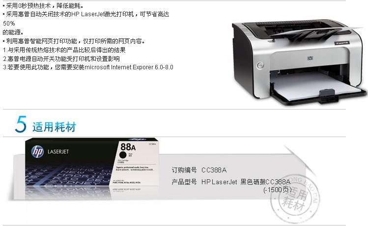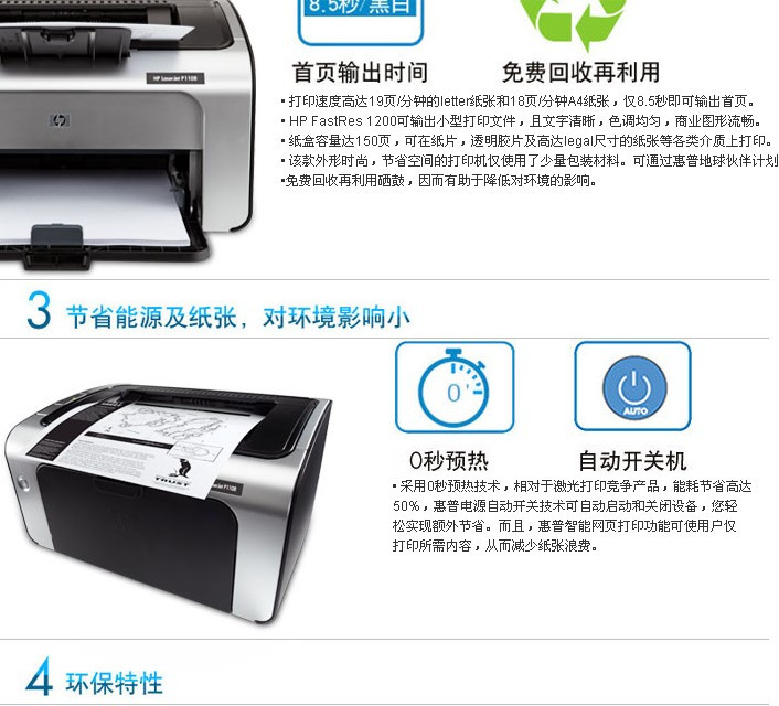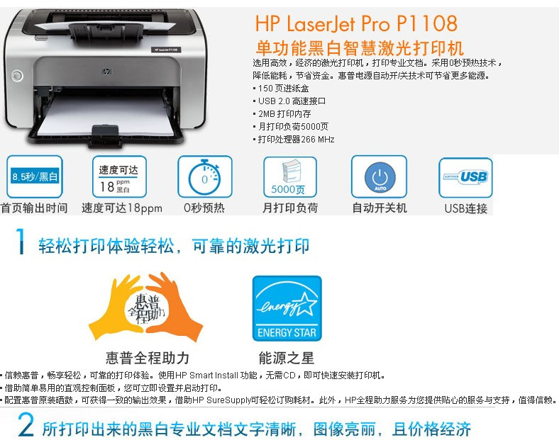 商品名称:惠普(HP)LaserJet Pro P1108黑白激光打印