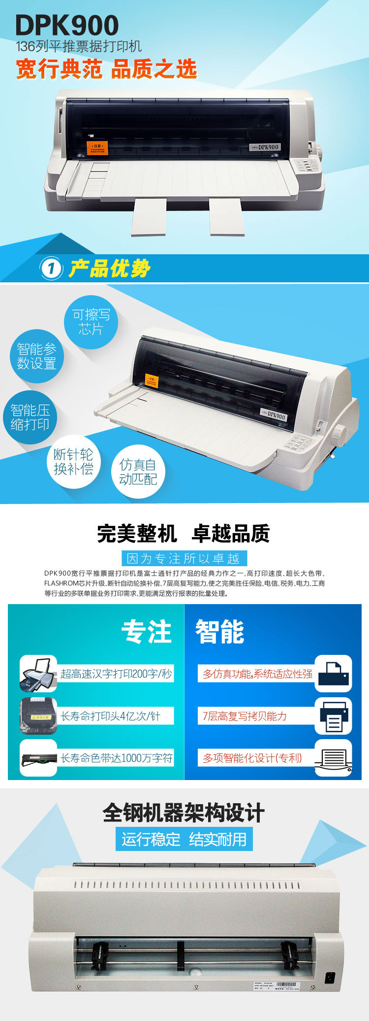 商品名称:富士通(Fujitsu)DPK900 136列平推式针式打印机