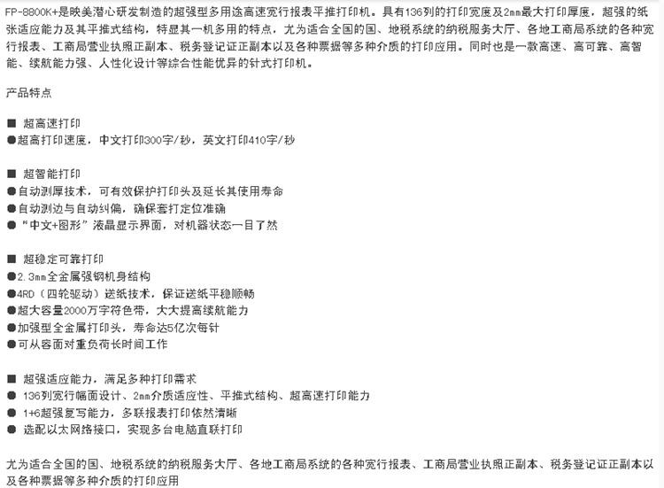 商品名称:FP-8800k+ 高速宽行报表平推打印机