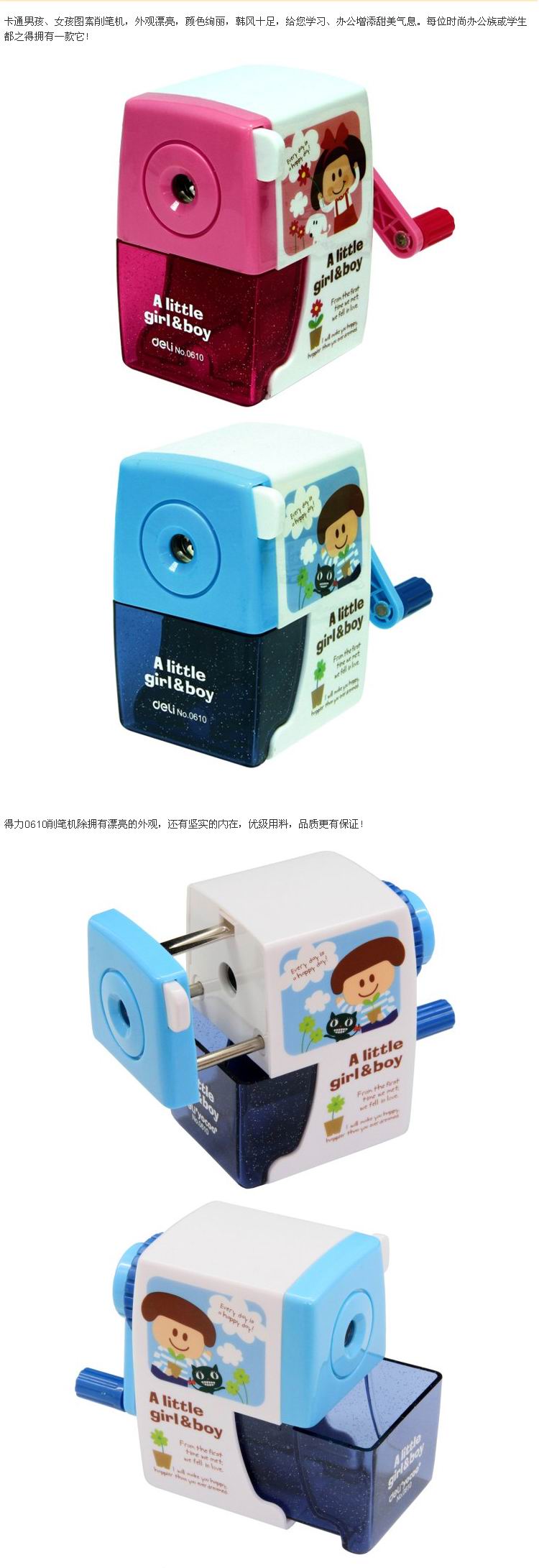商品名称:得力(deli) 0610 卡通学生手摇削笔器 转笔刀